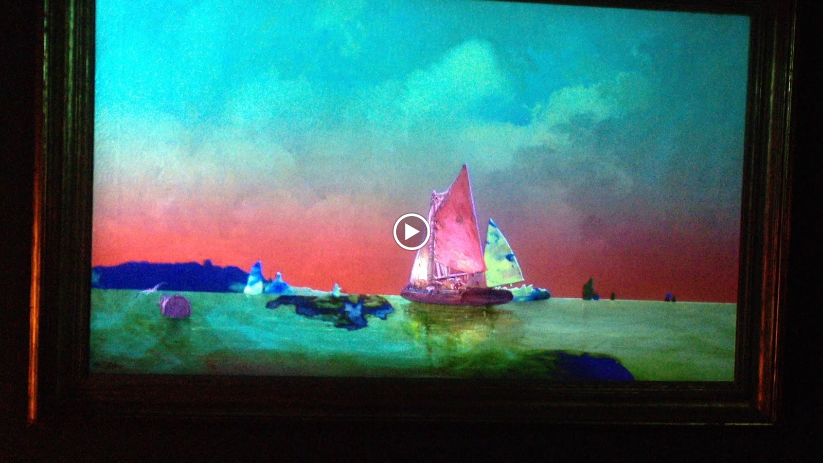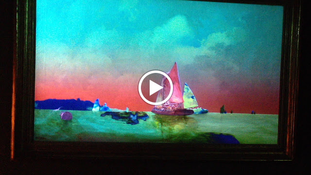 Dans un décor d'appartement des années cinquante, elle sait marier la technologie au fil du temps, à nos jours, comme un oeil aguerri, une machine à voyager et tout en faisant parler les objets, en projetant des films dans des objets sur des objets de la vie courante, sac a main, coquillages, bouteilles, miroirs...